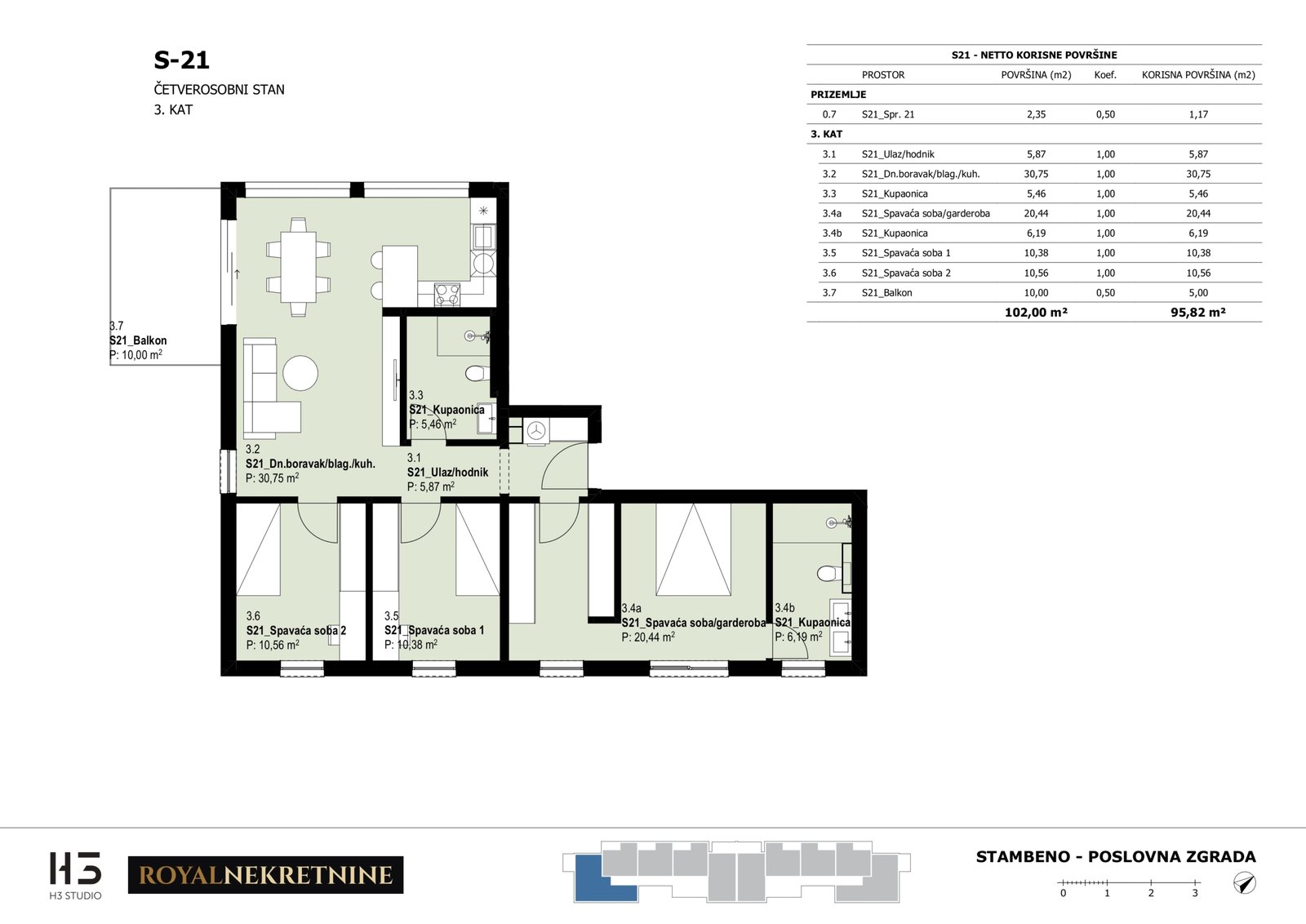 | Stan S21 – 3.kat – 4 sobni – Z3 | 3 | 1 | Da | 96,03 m² | — | Dostupno | Otvori tlocrt | — |