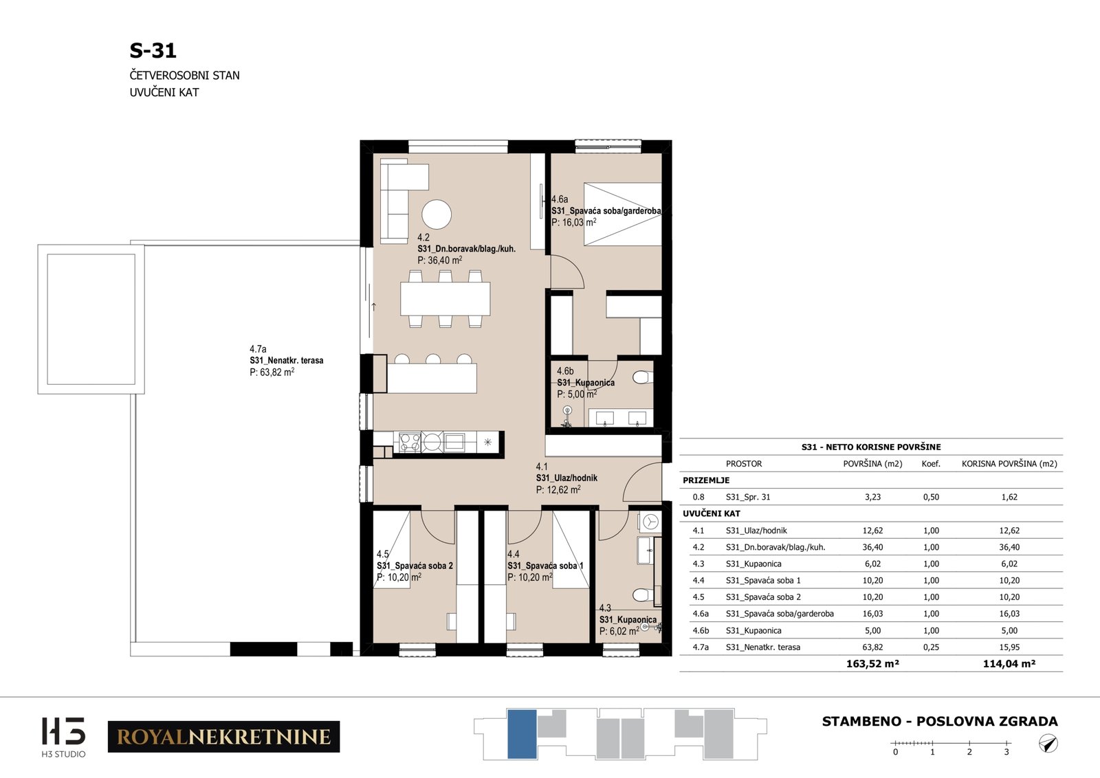 | Stan S31 – Uvučeni kat – 4 sobni – Z3 | 3 | 1 | Da | 114,45 m² | — | Dostupno | Otvori tlocrt | — |