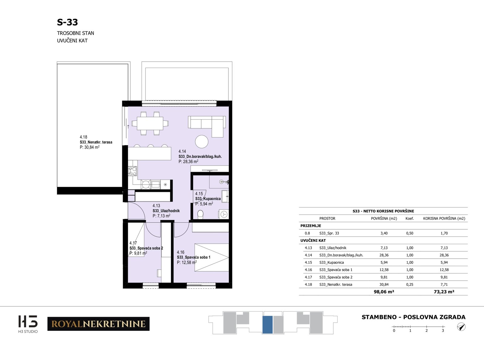 | Stan S33 – Uvučeni kat – 3 sobni – Z3 | 2 | 1 | Ne | 73,62 m² | — | Prodano | Otvori tlocrt | — |