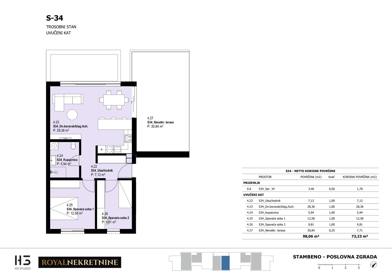 | Stan S34 – Uvučeni kat – 3 sobni – Z3 | 2 | 1 | Ne | 73,67 m² | — | Prodano | Otvori tlocrt | — |