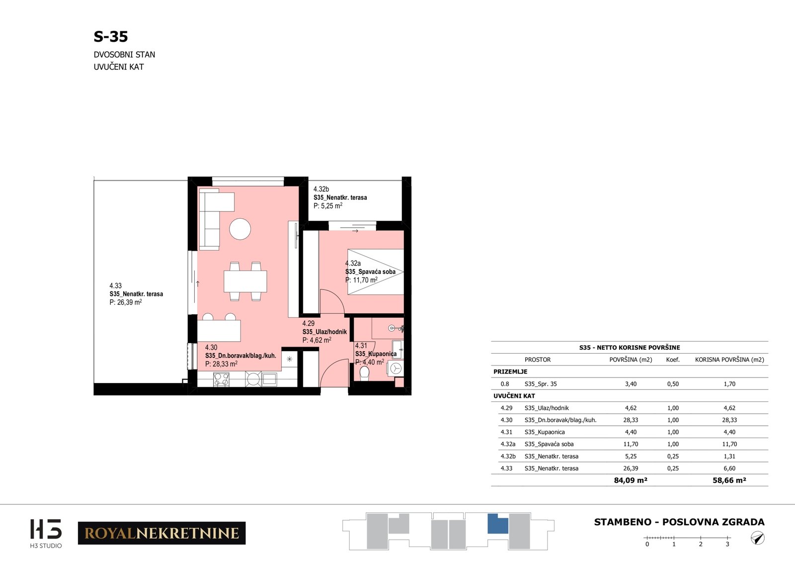 | Stan S35 – Uvučeni kat – 2 sobni – Z3 | 1 | 1 | Ne | 59,17 m² | — | Prodano | Otvori tlocrt | — |
