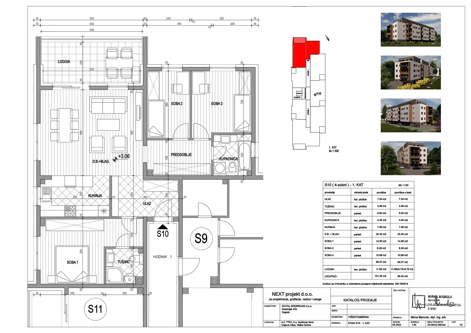 | Stan S10 – 1.kat – 4 sobni | 3 | 1 | — | 98,33 m² | — | Dostupno | Otvori tlocrt | — |