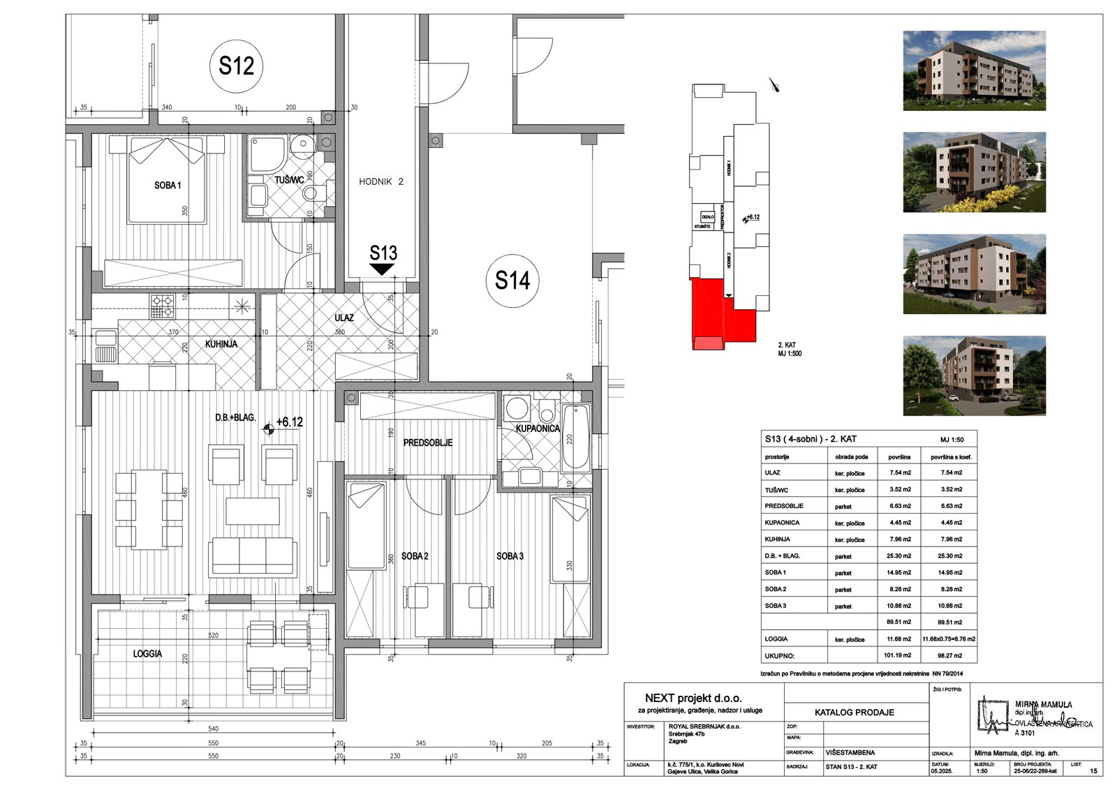 | Stan S13 – 2.kat – 4 sobni | 3 | 1 | — | 98,27 m² | — | Prodano | Otvori tlocrt | — |