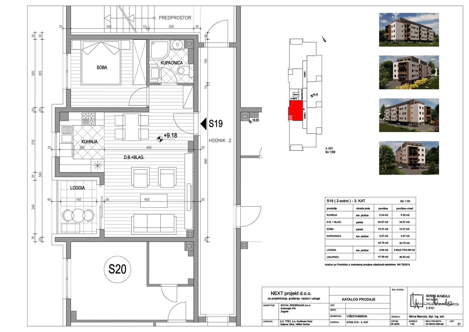 | Stan S19 – 3.kat – 2 sobni | 1 | 1 | — | 46,63 m² | — | Prodano | Otvori tlocrt | — |