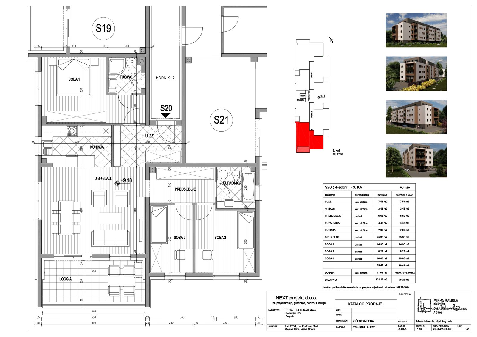 | Stan S20 – 3.kat – 4 sobni | 3 | 1 | — | 98,23 m² | — | Prodano | Otvori tlocrt | — |