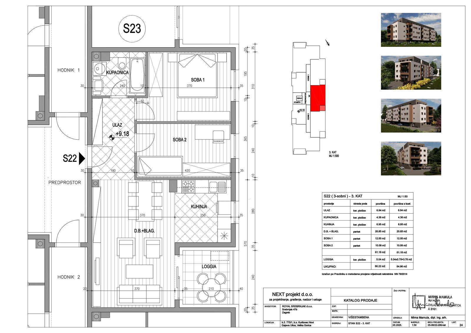 | Stan S22 – 3.kat – 3 sobni | 2 | 1 | — | 64,96 m² | — | Prodano | Otvori tlocrt | — |