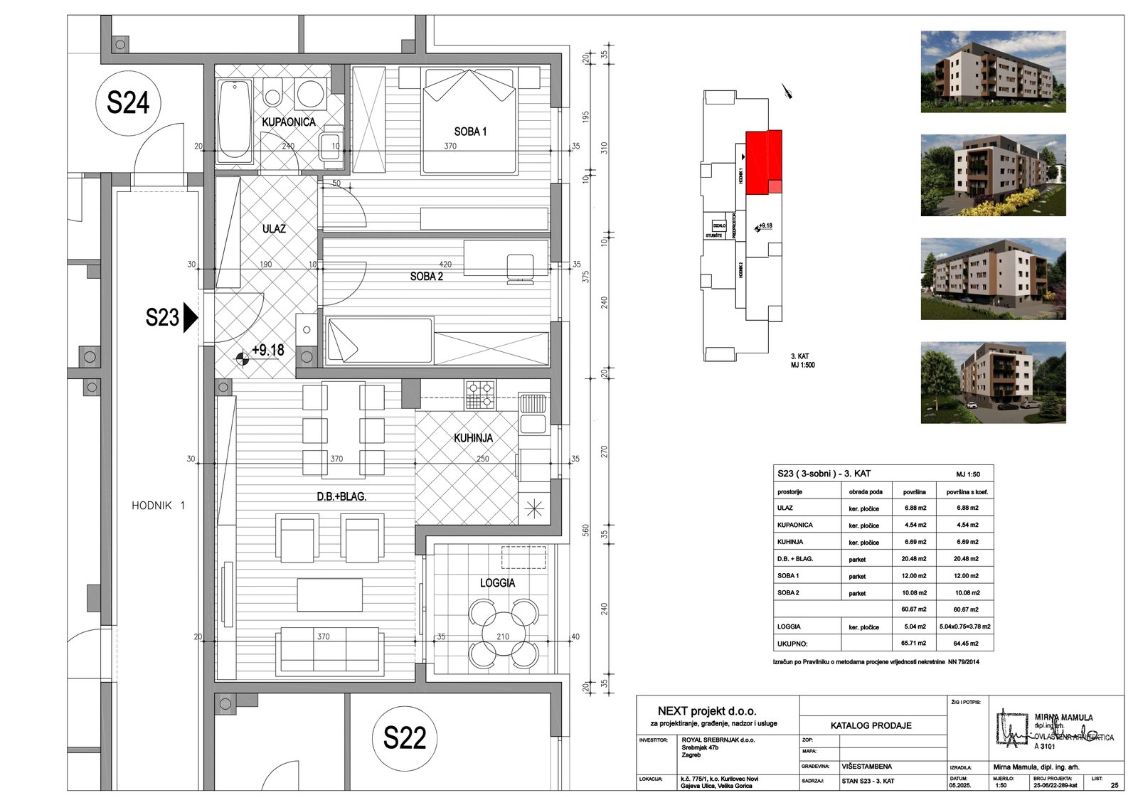 | Stan S23 – 3.kat – 3 sobni | 2 | 1 | — | 64,45 m² | — | Prodano | Otvori tlocrt | — |