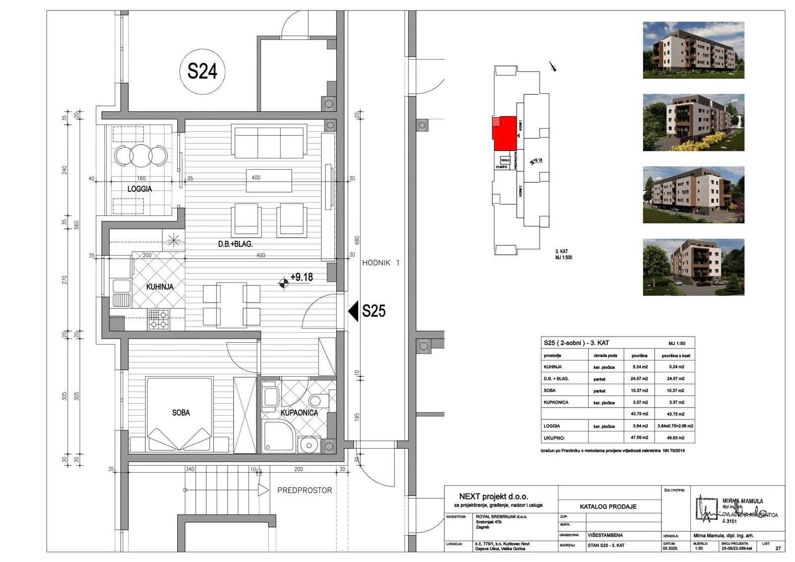 | Stan S25 – 3.kat – 2 sobni | 1 | 1 | — | 46,63 m² | — | Prodano | Otvori tlocrt | — |