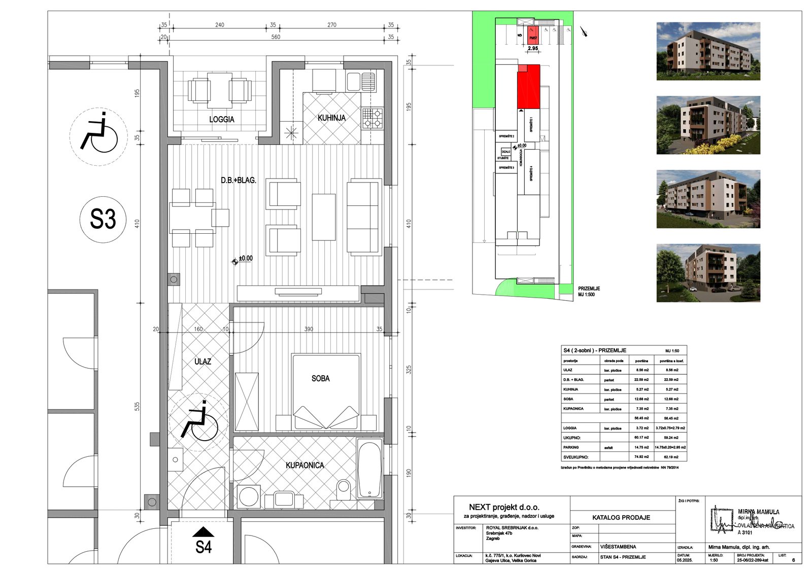 | Stan S4 – Prizemlje – 2 sobni | 1 | 1 | — | 62,19 m² | — | Prodano | Otvori tlocrt | — |