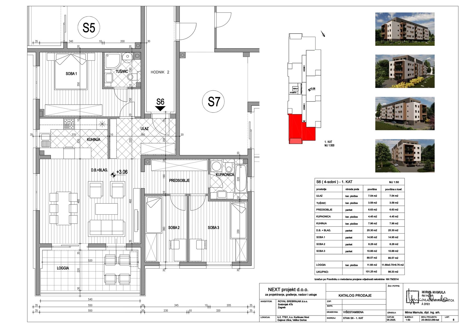 | Stan S6 – 1.kat – 4 sobni | 3 | 1 | — | 98,33 m² | — | Prodano | Otvori tlocrt | — |
