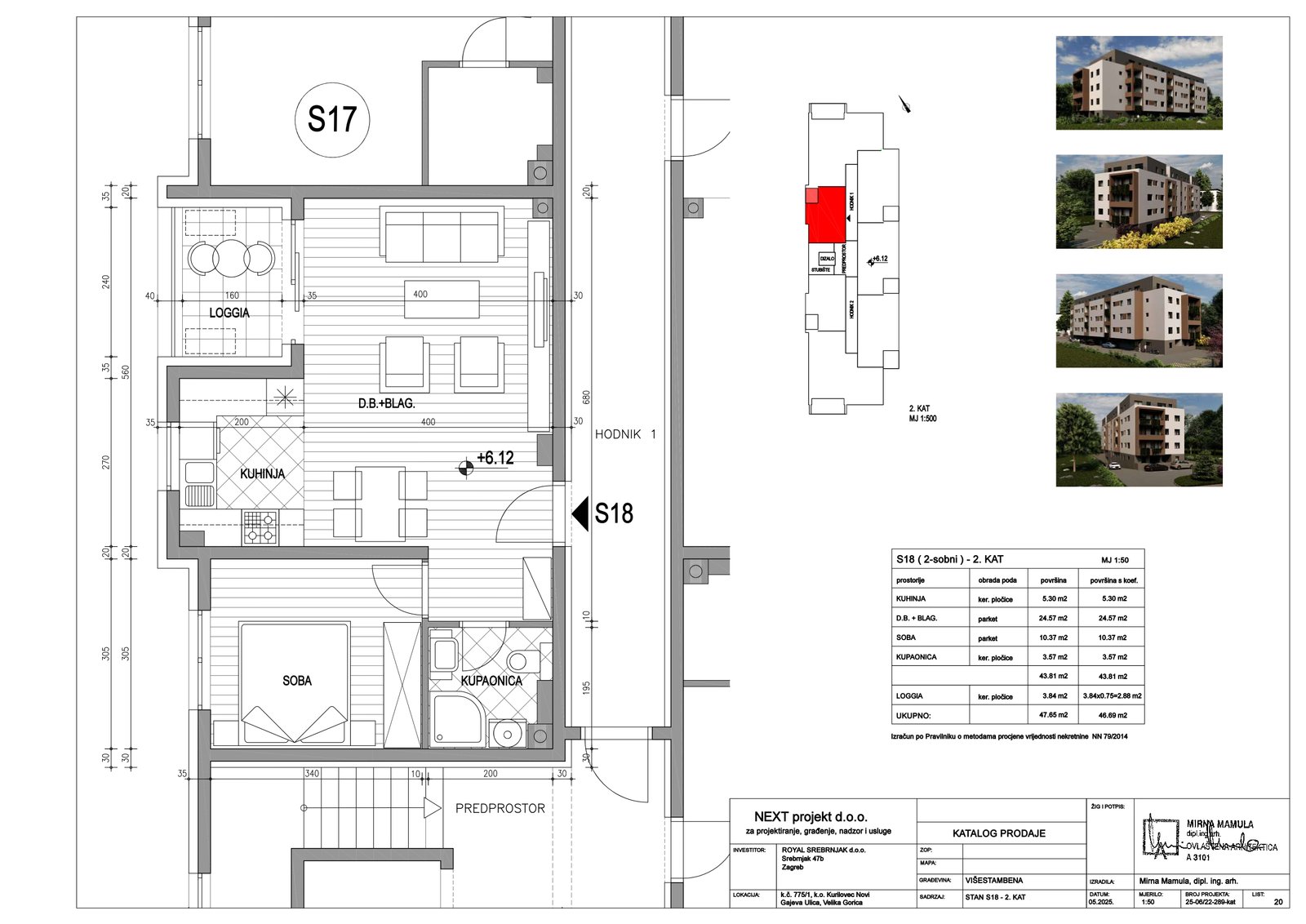 | Stan S18 – 2.kat – 2 sobni | 1 | 1 | — | 46,69 m² | — | Prodano | Otvori tlocrt | — |